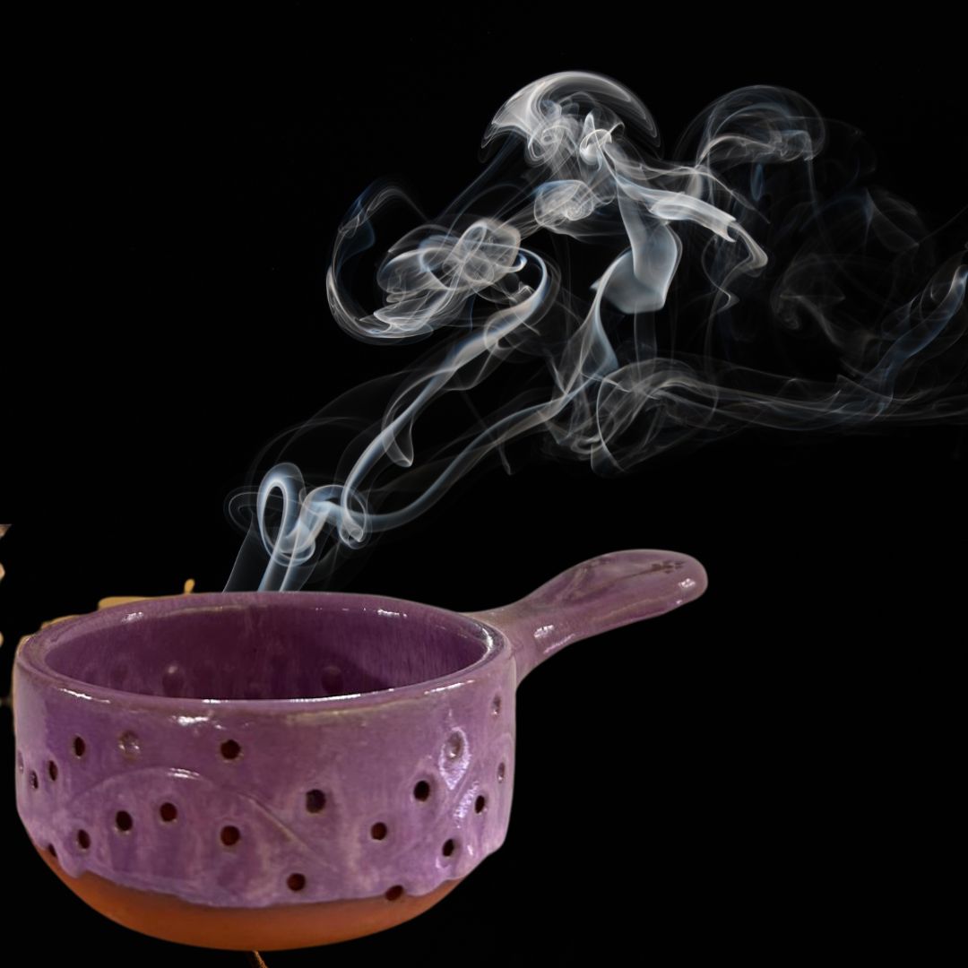Paila greda esmaltada para sahumear y honrar costumbres ancestrales o bien de uso decorativo o culinario.